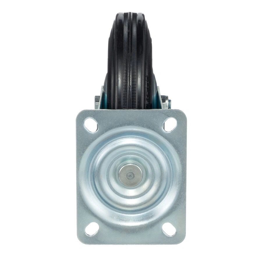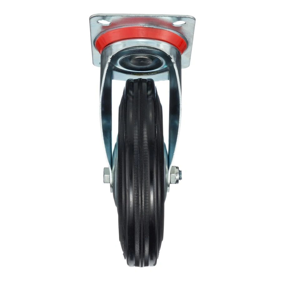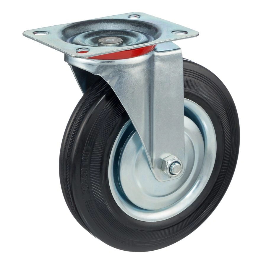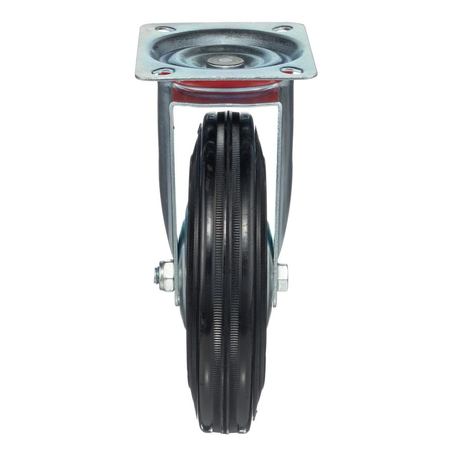 Колесо поворотное 4001-200, диаметр 200мм., грузоподъемность 185 кг. Колеса из черной литой резины, центр из двух гальванизированных дисков из штампованной стали. Роликовый (игольчатый) подшипник расположен в углублении, выдавленном под прессом, и содержит цилиндрические ролики подшипника. Кронштейн изготовлен прессованием из листовой стали. В поворотном узле двухрядный шарикоподшипник. Возможно применение на относительно грубых полах складов, заводов, производственных и строительных площадках. Данные колеса можно использовать на неровных поверхностях, во влажной окружающей среде и использовании вне помещения, не рекомендуется применять в среде с органическими растворителями, хлорированными веществами, гидрокарбонатами и минеральными маслами. Температура эксплуатации от -20 до +70С.