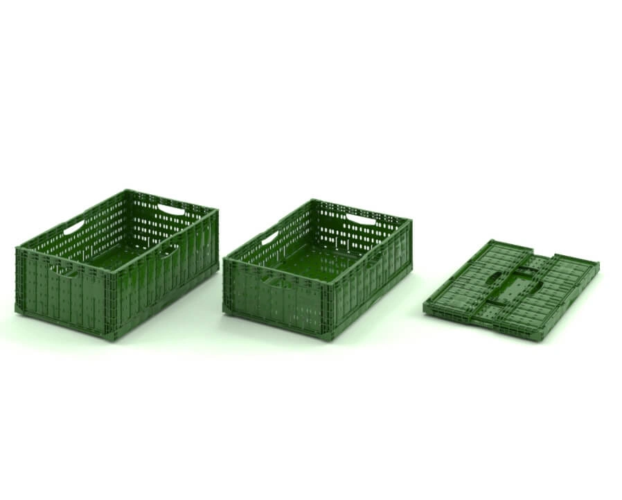 Контейнер отлично подходит для выкладки различной продукции в торговых залах магазинов. Отлично подойдет для использования в качестве многооборотной тары в пулинговых схемах. Складной ящик изготовлен из первичного полипропилена, имеет перфорированные стенки и дно, а также удобные ручки по всем четырем сторонам. пустых ящиков.