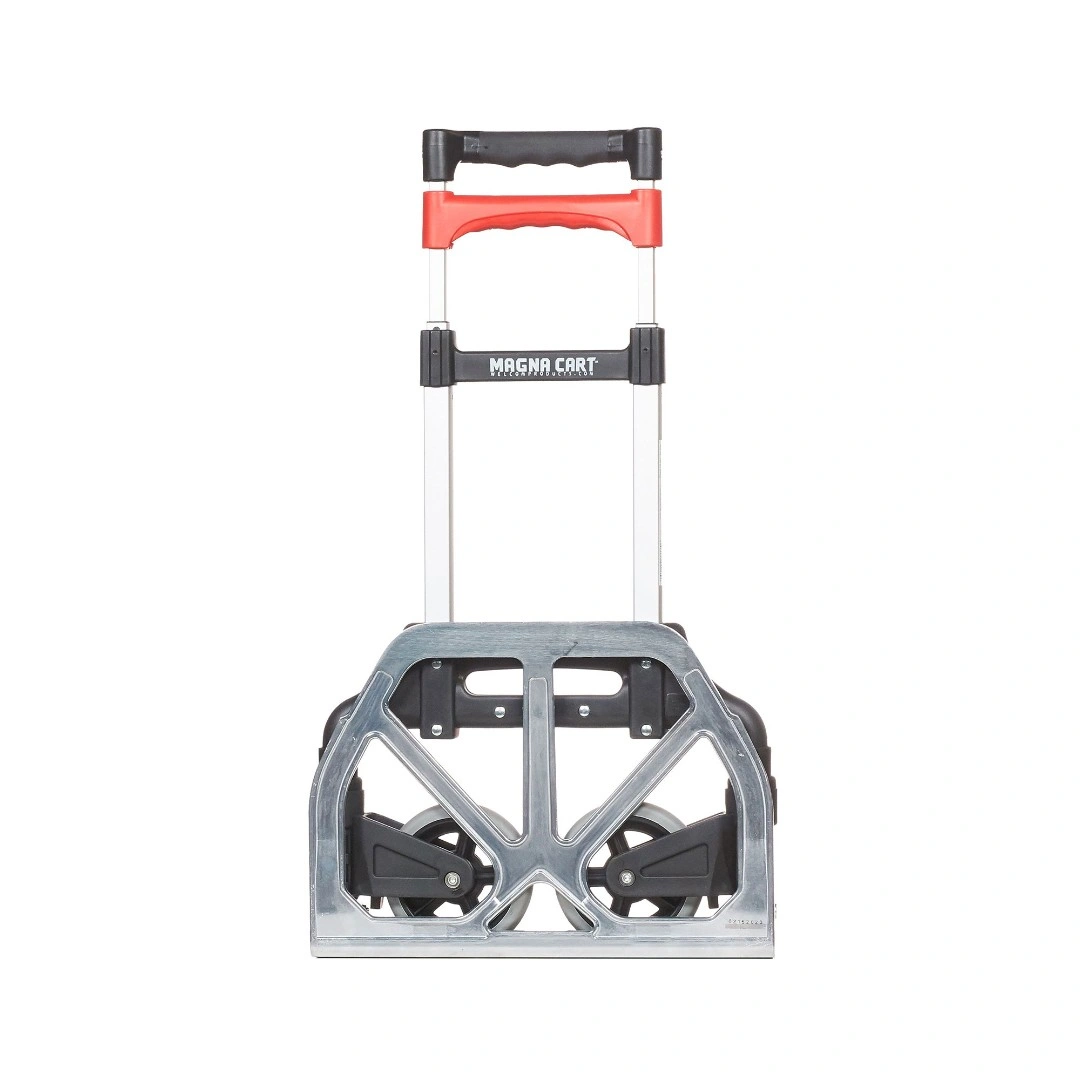 Складная тележка MAGNA CART MCX из алюминия c максимальной грузоподъемностью 68кг. Тележка быстро и удобно раскладывается и собирается за счет сложения телескопической ручки и колес вдоль корпуса. Материал алюминий. Размер площадки 279х387мм, максимальная высота ручки 980мм., диаметр колес 121мм. Складные тележки идеально подходят для транспортировки выставочного оборудования, обслуживания маленьких складов и перевозки грузов в домашних условиях или во время путешествий. За счет узкого профиля и компактных размеров технику легко разместить на полке в самолете или багажнике машины.