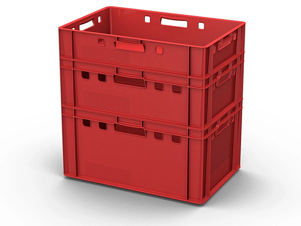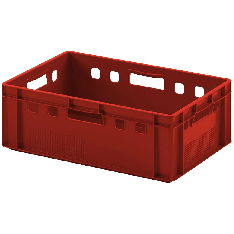 Специализированная линейка ящиков для мяса, мясных изделий, колбасы, фарша. Конструкция ящиков позволяет быстро охлаждать и замораживать их содержимое.